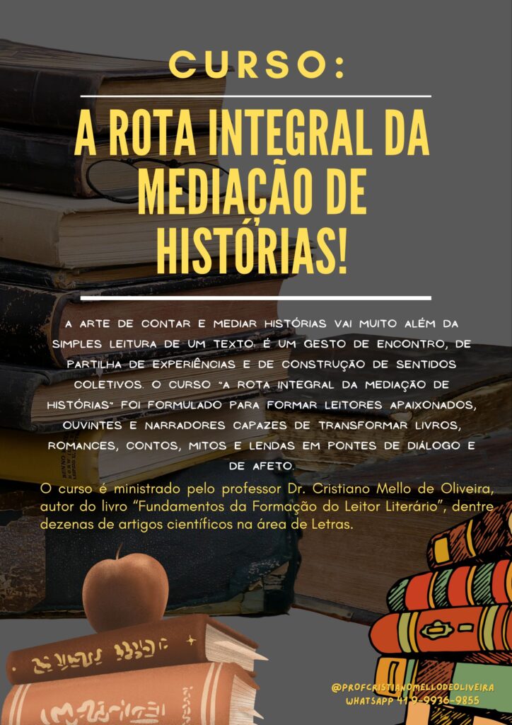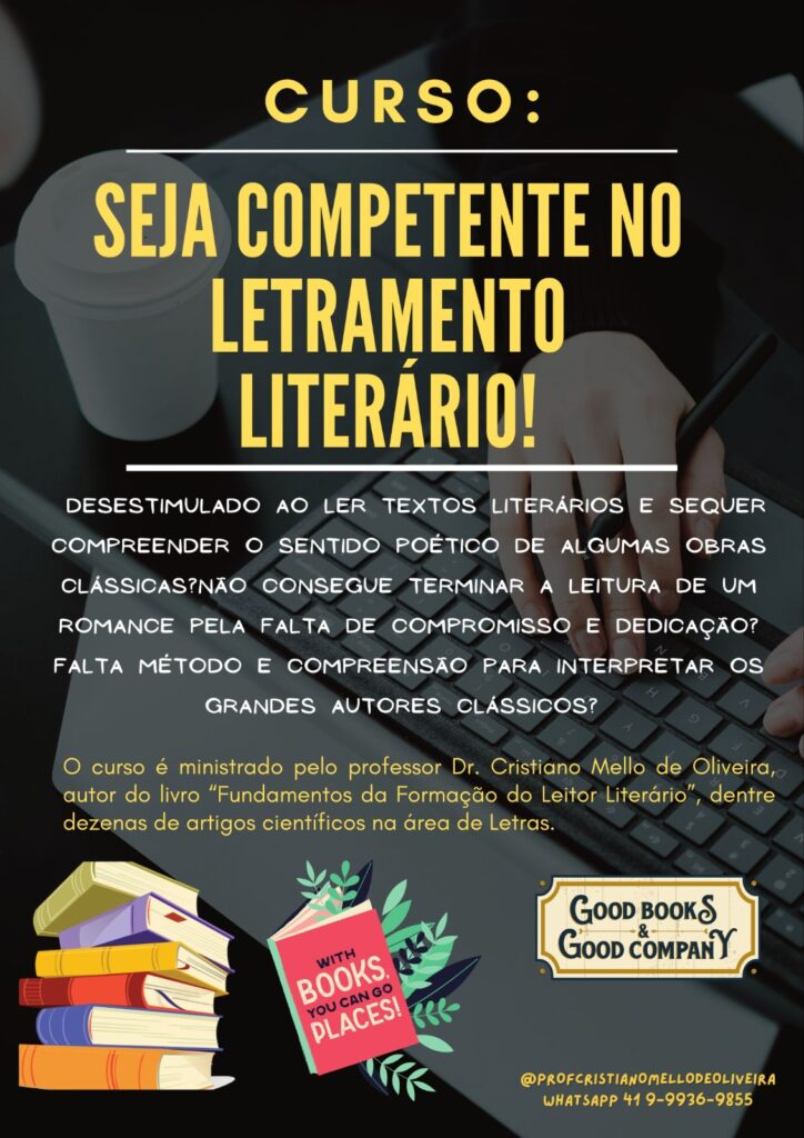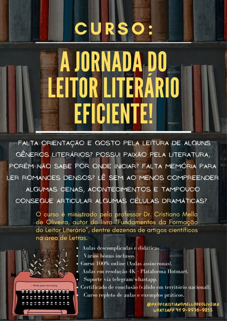 Obs: O curso conta com uma breve reunião online de 30 minutos (por meio da plataforma Zoom). Algumas informações estratégicas necessárias serão úteis para que o leitor contumaz (o cursista) possa expandir seus conhecimentos como mediador ou professor de Literatura.