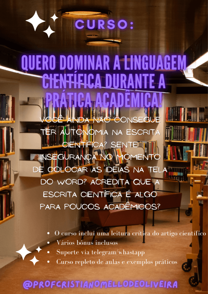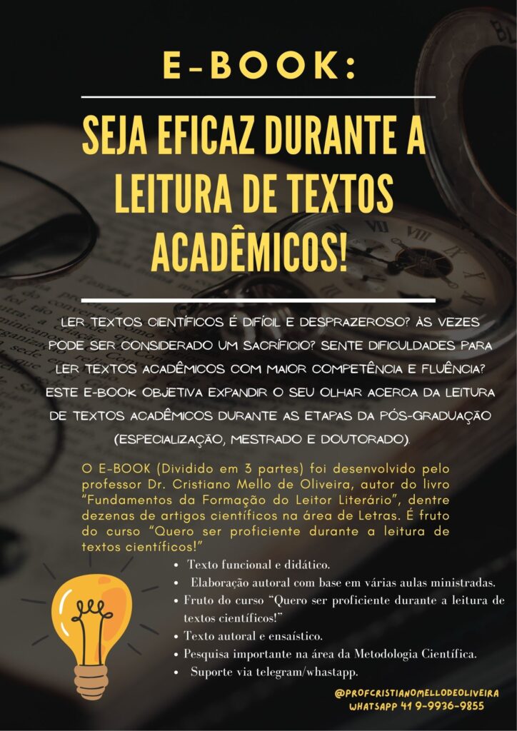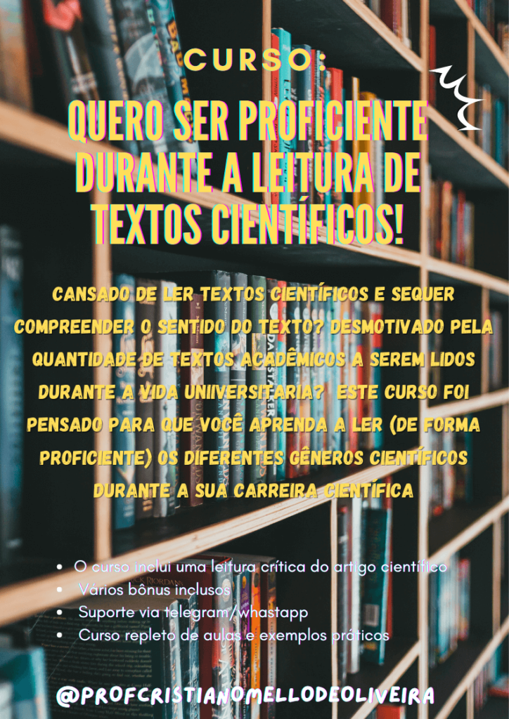 OBS: O e-book foi formulado por meio do curso “Quero ser proficiente durante a leitura de textos científicos!”São mais de 150 páginas trasncritas ao longo do livro.