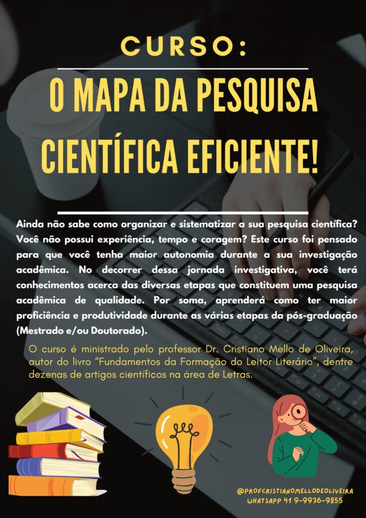 OBS: O e-book foi formulado por meio do curso “O mapa da pesquisa científica eficiente!”São mais de 150 páginas trasncritas ao longo do livro.