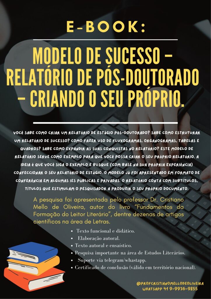 OBS: A formulação do relatório de pós-doutorado marca uma conquista importante na vida do pesquisador profissional. É por meio deste que o investigador demosntra maturidade intelectual, criatividade e autoria. Por meio desta tríade, deixamos para consulta a pesquisa empeendida no Departamento de Letras Vernáculas da UFRJ. Ao adquirir o produto digital (formato PDF, composto de 60 páginas) , você também terá uma reunião de 30 minutos (previamente agendada) via Platafoforma Zoom.